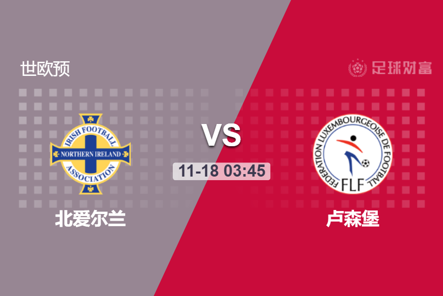 北京时间明日凌晨3点45分,世欧预赛一场比赛,北爱尔兰主场对阵卢森堡。