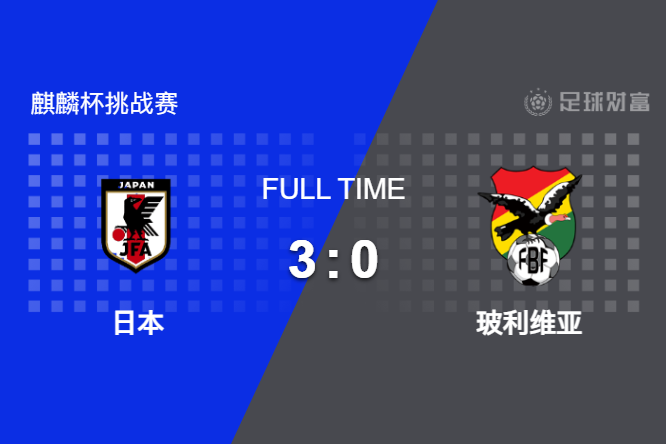 最终全场比赛结束,日本3-0轻取玻利维亚。