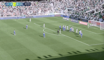 第41分钟,克鲁塞罗扳回一城!威廉主罚左侧任意球,西尼斯特拉前点头球破网,2-1!
