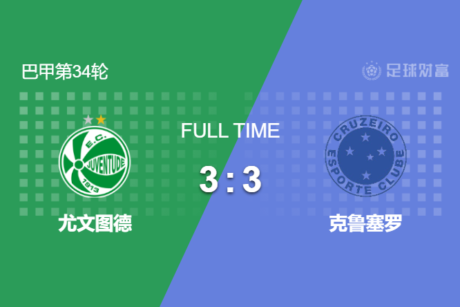 最终全场比赛结束,克鲁塞罗客场3-3绝平尤文图德。