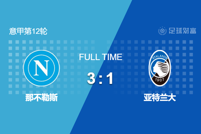 最终全场比赛结束,那不勒斯3-1力克亚特兰大,暂时登顶积分榜。