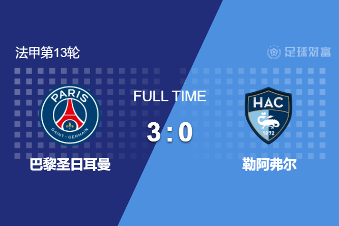 最终全场比赛结束,大巴黎主场3-0轻取勒阿弗尔,重返积分榜首位。