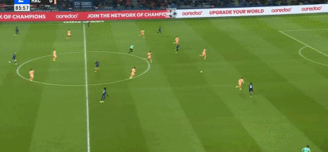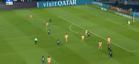 第87分钟,巴黎锁定胜局!科瓦拉茨赫利亚反击中斜传,巴尔科拉单刀球低射破网,3-0!