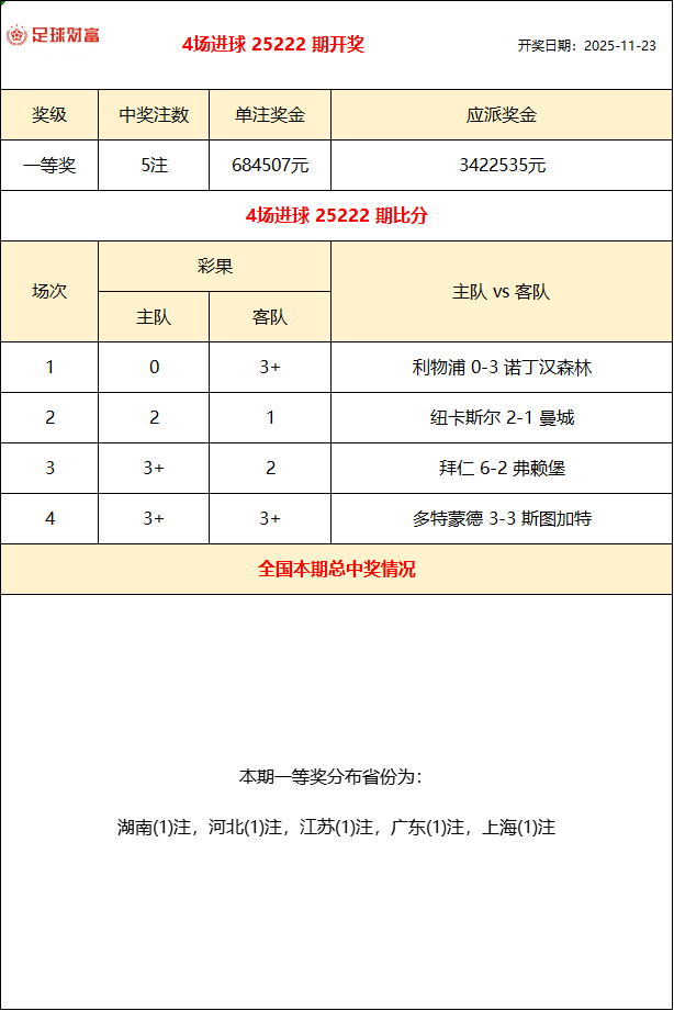 胜负彩25169期开奖:利物浦冷负保级队!头奖20注67万