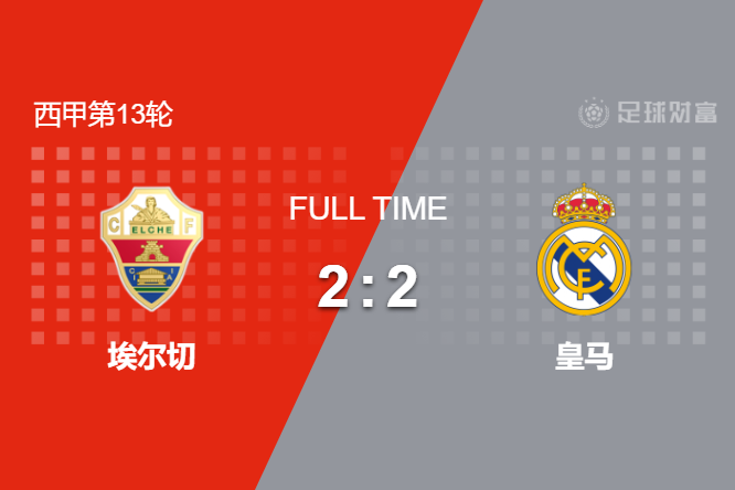 最终全场比赛结束,皇马客场2-2绝平埃尔切。