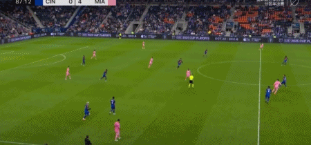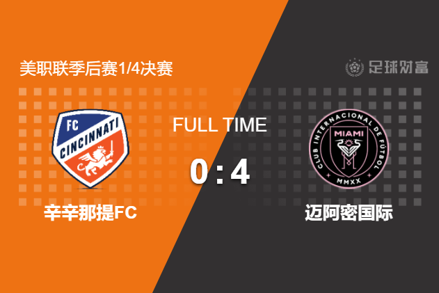 最终全场比赛结束,迈阿密国际客场4-0大胜辛辛那提,晋级四强。