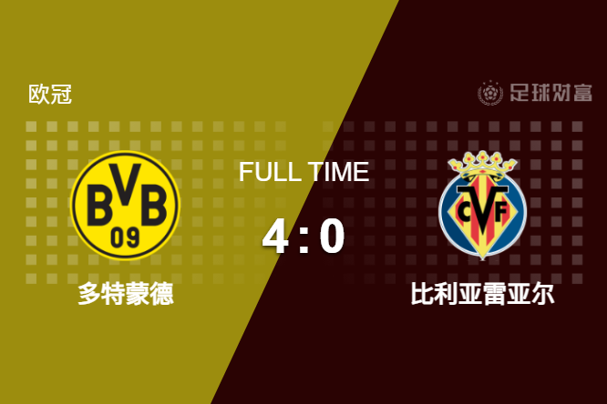 最终全场比赛结束,多特蒙德主场4-0大胜十人比利亚雷亚尔。