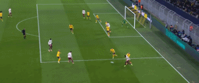 第31分钟,黄潜开出战术角球,盖耶迎球推射高出横梁。