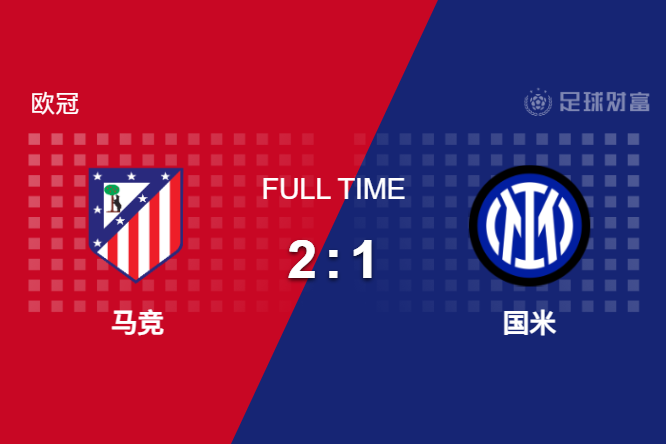 最终全场比赛结束,马竞主场2-1国际米兰。