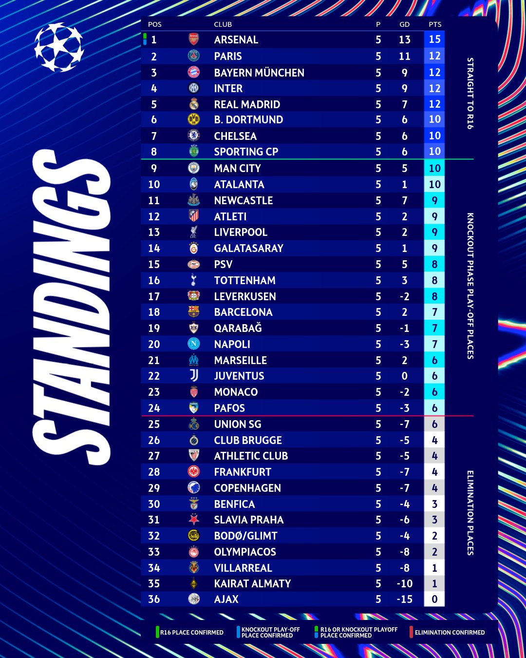 本周中,欧冠联赛阶段第5轮全部战罢,阿森纳主场3-1战胜拜仁,利物浦主场1-4不敌埃因霍温、马竞主场2-1绝杀国米,尤文客场3-2绝杀博德闪耀,相关机构更新了夺冠赔率。