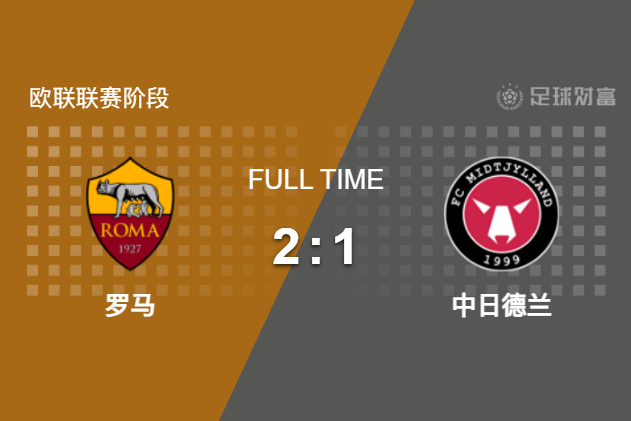 最终全场比赛结束,罗马2-1击败中日德兰。