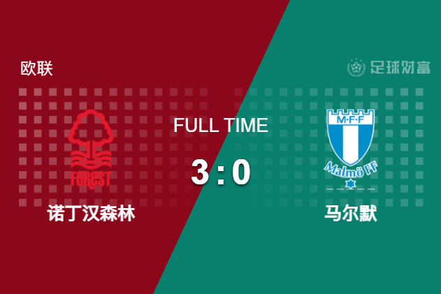 最终全场比赛结束,诺丁汉森林主场3-0战胜马尔默。