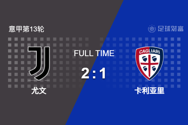最终全场比赛结束,尤文图斯主场2-1逆转卡利亚里。