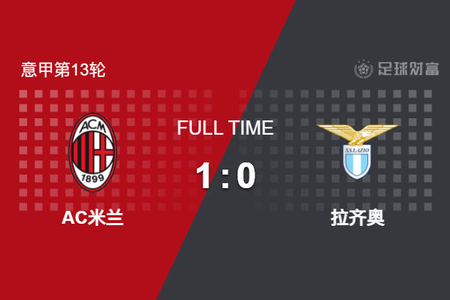 最终全场比赛结束,AC米兰主场1-0险胜拉齐奥。
