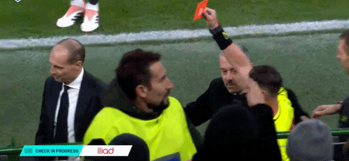 第90+8分钟,主帅米兰主帅阿莱格里抗议判罚染红。