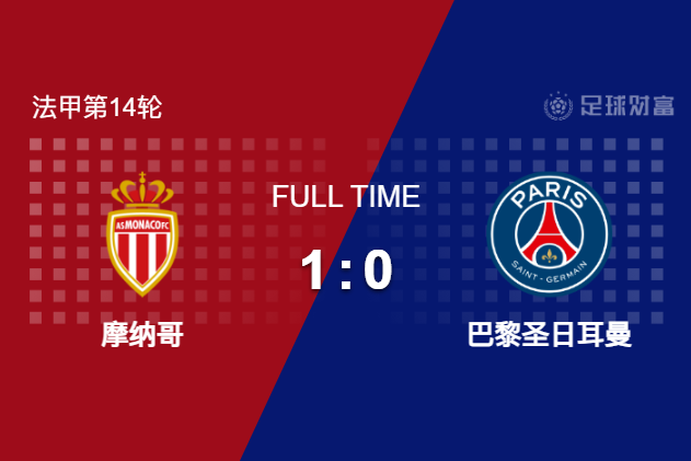 最终全场比赛结束,十人摩纳哥主场1-0巴黎。