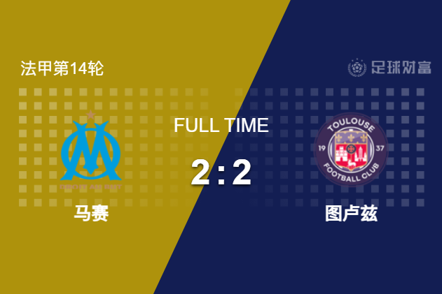 最终全场比赛结束,马赛主场2-2战平图卢兹,由于巴黎本轮输球,马赛错失登顶良机。