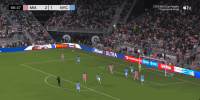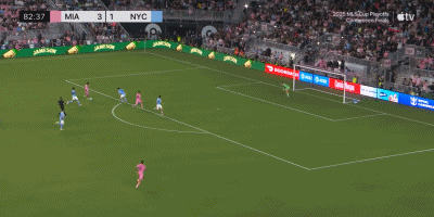 第67分钟,梅西中路分球,西尔维蒂停球低射破门,迈阿密3-1。