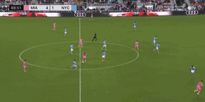 第89分钟,阿连德单刀球挑射上演帽子戏法,迈阿密5-1。