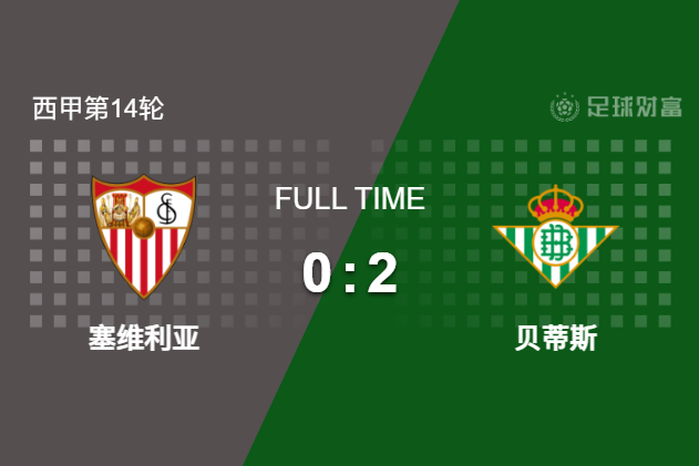 最终全场比赛结束,塞维利亚主场0-2不敌贝蒂斯。