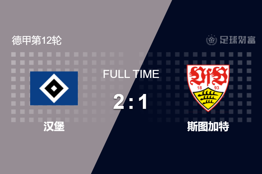 最终全场比赛结束,汉堡2-1击败斯图加特,结束德甲5轮不胜。
