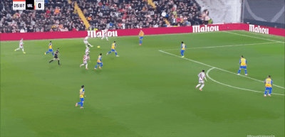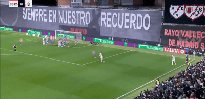 第37分钟,巴列卡诺主场领先!贡巴乌右路送出传中球,诺贝尔·门迪头球破网,1-0!!