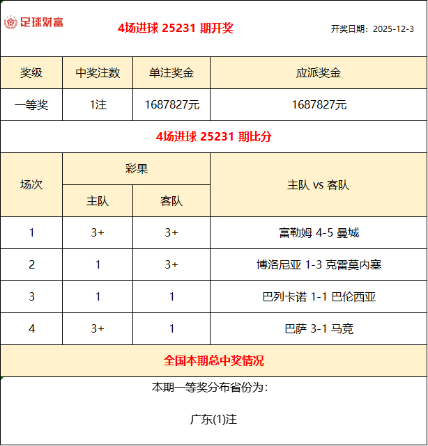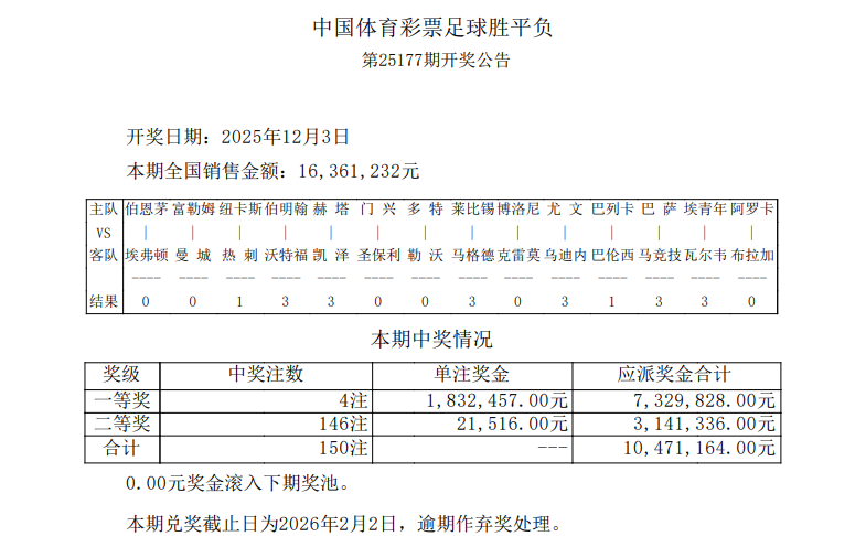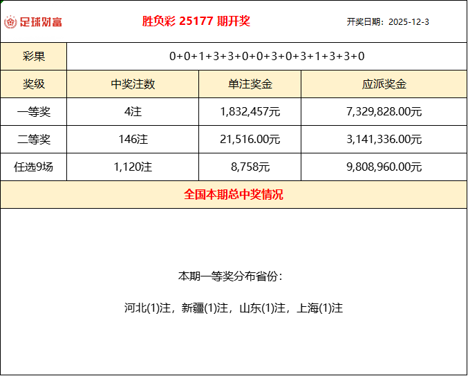胜负彩25177期开奖:热刺读秒绝平纽卡!头奖4注183万