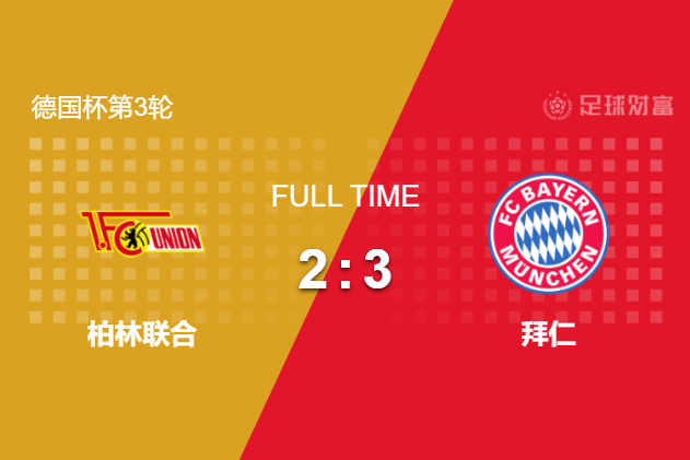 最终全场比赛结束,拜仁3-2击败柏林联合晋级。