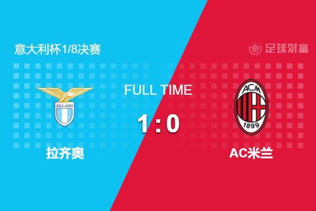 最终全场比赛结束,拉齐奥主场1-0淘汰AC米兰,晋级八强。