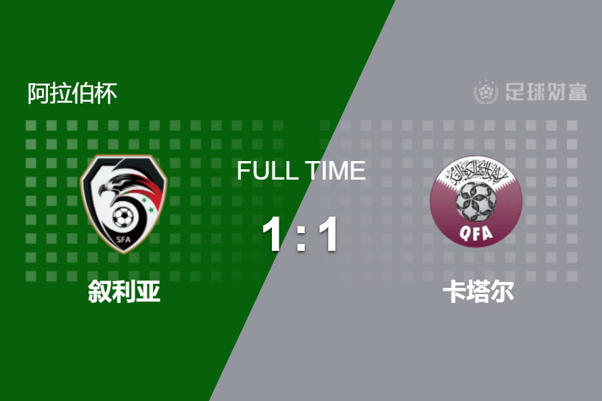 最终全场比赛结束,叙利亚1-1战平卡塔尔。