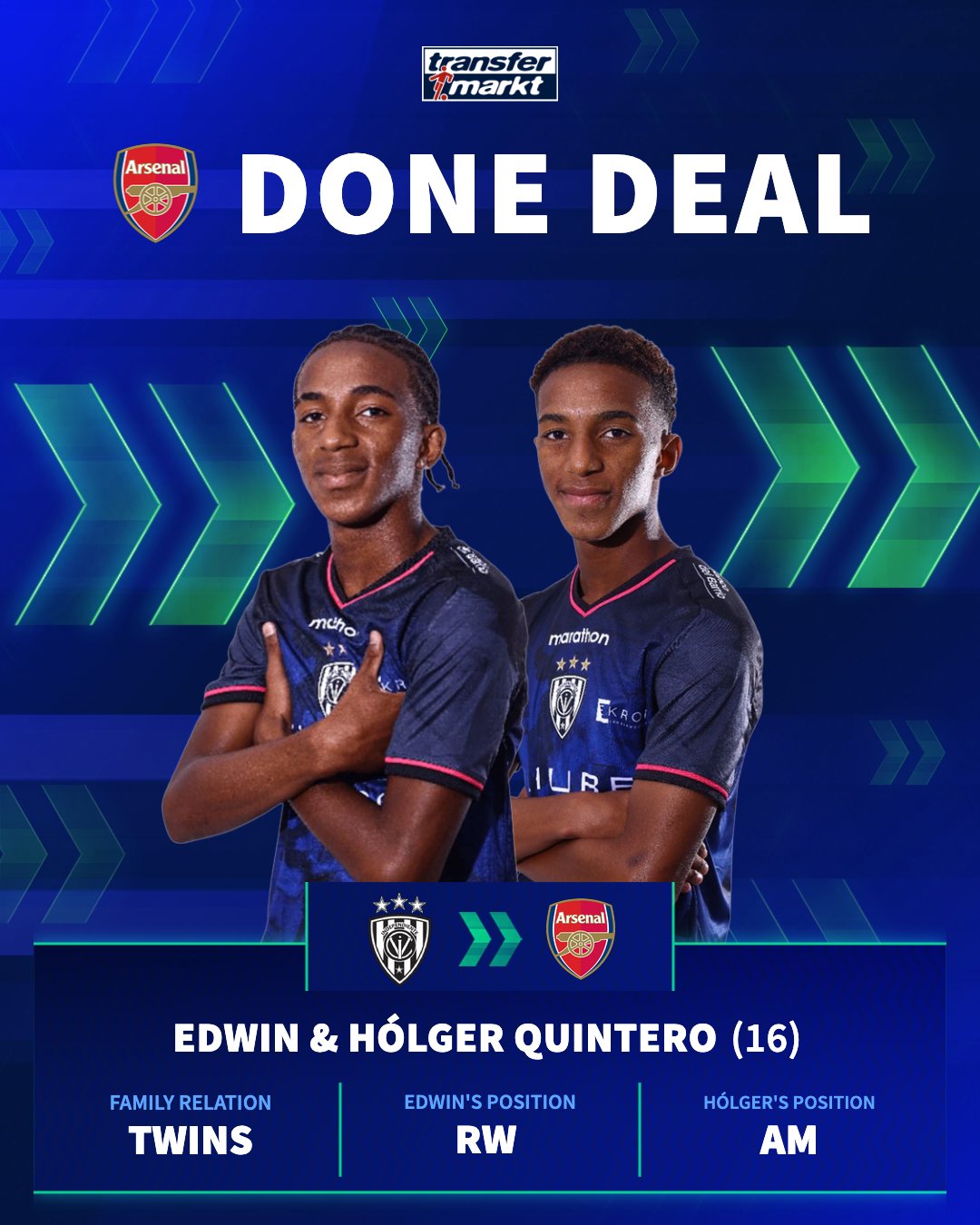 据媒体报道称,霍尔格-金特罗、埃德温-金特罗在本周前往伦敦接受了阿森纳的体检,这对来自厄瓜多尔的双胞胎兄弟与阿森纳签下了预备合同,协议中约定两人在2027年8月年满18岁后正式加盟阿森纳,并会得到一份五年职业合同,两人被认为是厄瓜多尔足球的未来,阿森纳击败多家欧洲球队才得到了他们。
