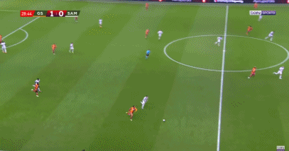 比赛进行到第29分钟,萨内反击中右路带球强行超车,随后助攻奥斯梅恩单刀球低射破网,2-0!!