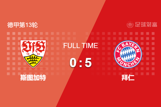 最终全场比赛结束,拜仁客场5-0大胜斯图加特。
