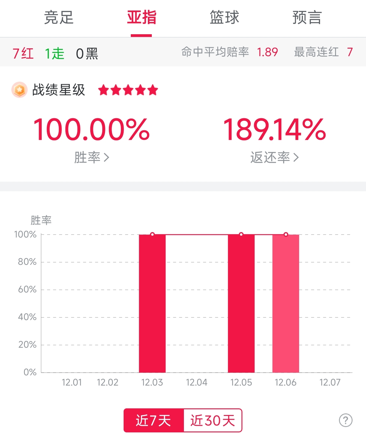 恭喜“風生_水起 ”亚指近13中12,目前10连红,近7天胜率100%,返还率189.14%。“風生_水起 ”在今天公推了德乙:柏林赫塔vs马格德堡,感兴趣可以点击名字看看他的最新发帖,他有时候他会一天推多场比赛,还是值得参考一下。