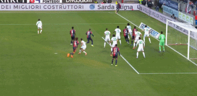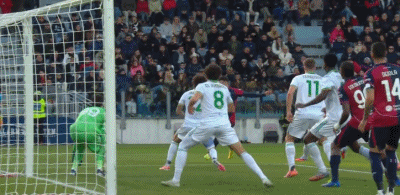 第83分钟,卡利亚里绝杀!塞巴斯蒂亚诺埃斯波西托开出左侧角球,加埃塔诺后点胸部停球,小角度凌空抽射,艾纳维门线将球挡入大门,1-0!!!