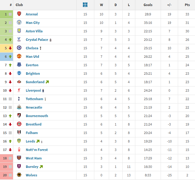 赛后相关数据统计,在英超联赛第15轮全部战罢后,狼队目前联赛0胜仅积2分垫底,是五大联赛同期积分最少的球队,同时与佛罗伦萨是唯二尚未取得联赛首胜的球队。
