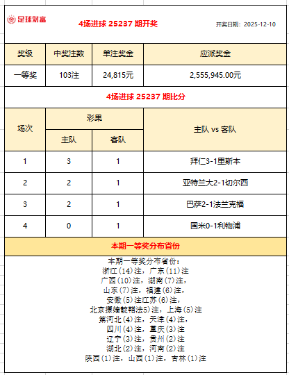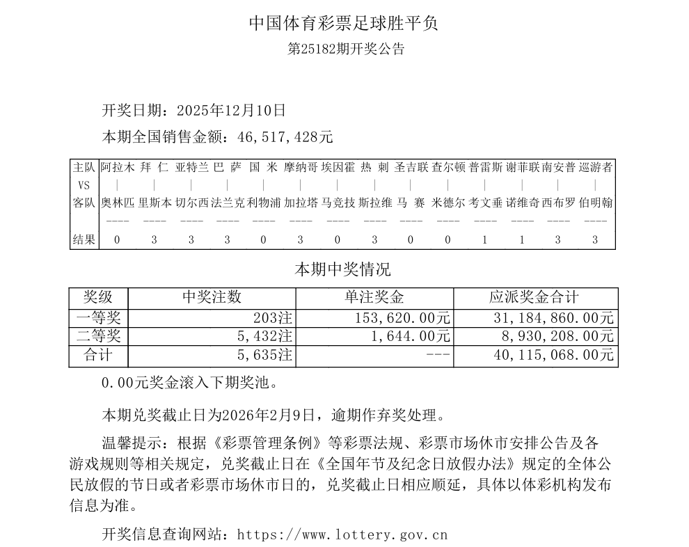 胜负彩25182期开奖:利物浦绝杀国米!头奖达203注!