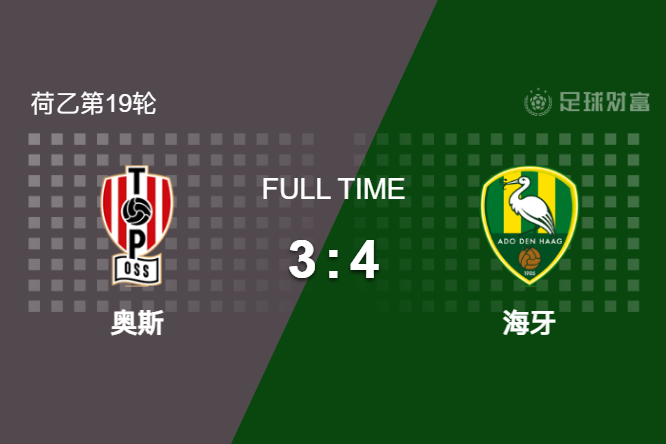最终全场比赛结束,海牙客场4-3险胜奥斯,本赛季19轮联赛拿到17胜!