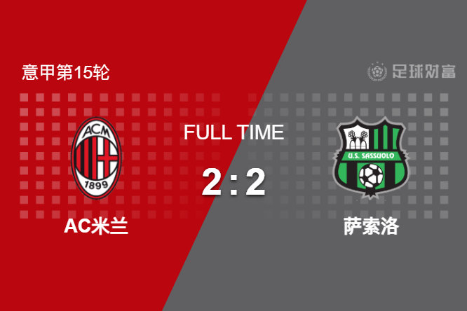 最终全场比赛结束,AC米兰主场2-2战平萨索洛。