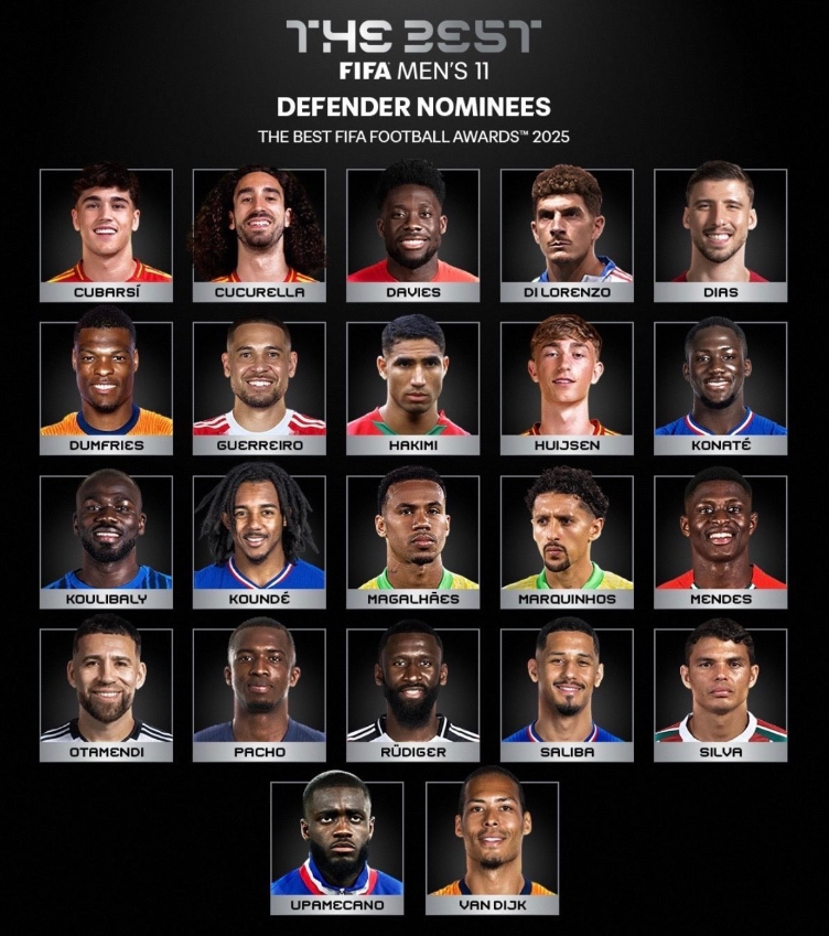 库巴西、库库雷利亚、阿方索-戴维斯、迪洛伦佐、鲁本-迪亚斯、邓弗里斯、格雷罗、阿什拉夫、赫伊森、科纳特、库利巴利、孔德、加布里埃尔、马尔基尼奥斯、努诺-门德斯、奥塔门迪、威廉-帕乔、吕迪格、萨利巴、蒂亚戈-席尔瓦、于帕梅卡诺、范戴克