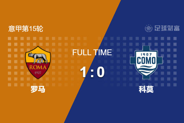最终全场比赛结束,罗马主场1-0小胜科莫。