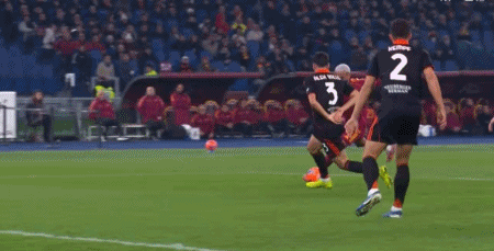 第31分钟,迪奥中场带球长驱直入,杀入禁区左脚射门被罗马球员封堵!