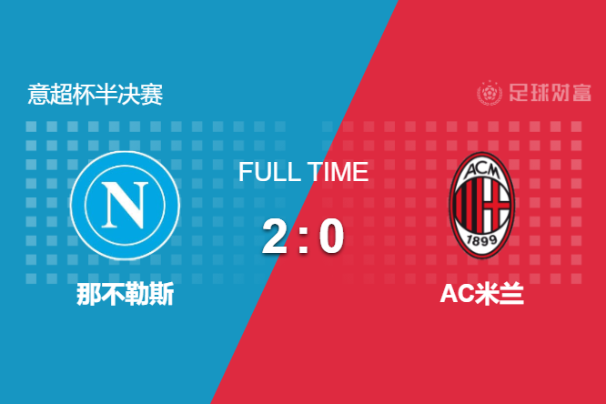 最终全场比赛结束,那不勒斯2-0完胜AC米兰,晋级意超杯决赛。
