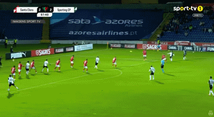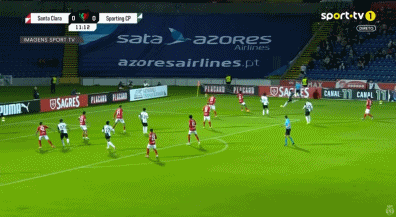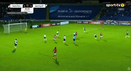 开场第12分钟,葡萄牙体育领先!弗雷斯内达右路传中,若昂·西蒙斯接球转身低射右下角破网,1-0!