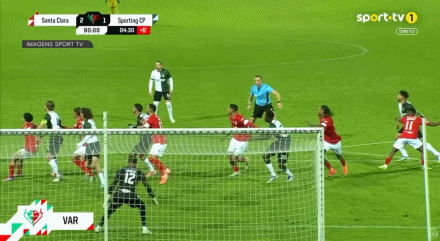伤停补时第16分钟,主裁判长时间var确认后吹罚点球,认定圣克拉拉球员拼抢中对尤尔曼德犯规,路易斯·苏亚雷斯主罚点球命中,2-2!!葡萄牙体育绝平!