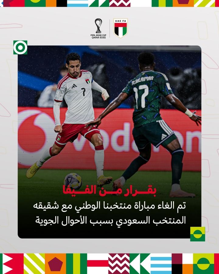 北京时间12月18日晚,阿拉伯杯季军赛,沙特阿拉伯对阵阿联酋的比赛因天气原因腰斩。赛后,国际足联发布官方公告,本场比赛的结果将由官方判定。