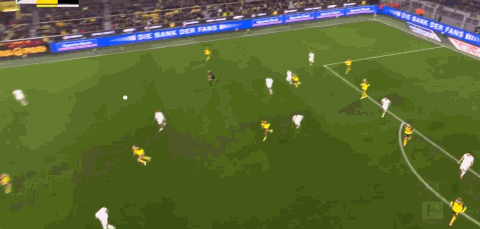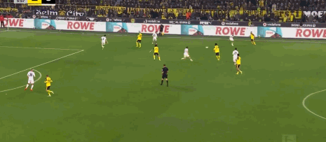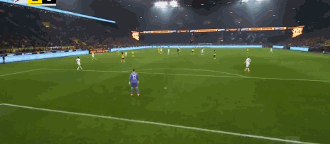 第10分钟,多特取得领先!聚勒右路45度起球,后点的布兰特凌空抽射入网,1-0!!