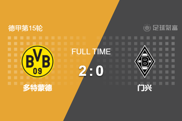 最终全场比赛结束,多特主场2-0完胜门兴。
