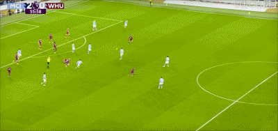 第56分钟,西汉姆联后场发动反击,鲍恩带球进入禁区小角度低射偏出左侧立柱!