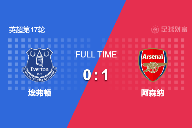 最终全场比赛结束,阿森纳客场1-0击败埃弗顿。